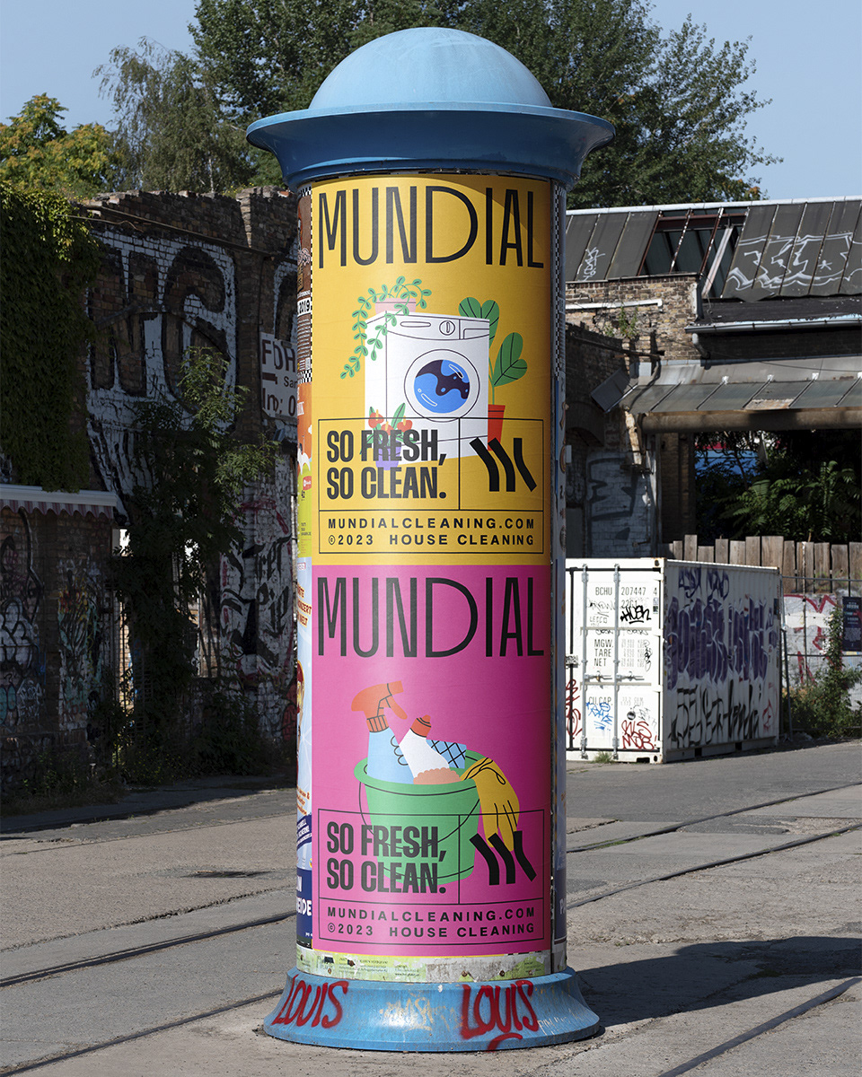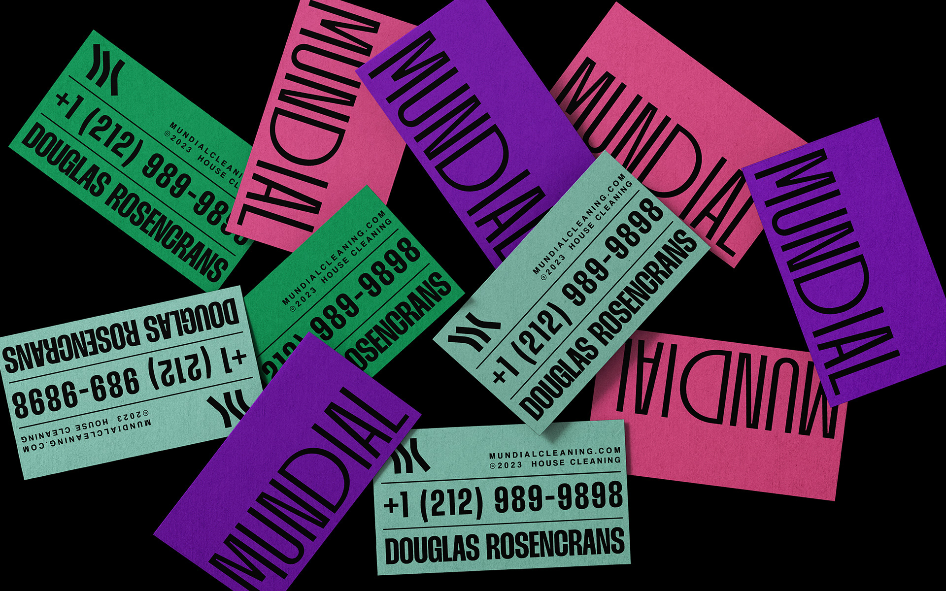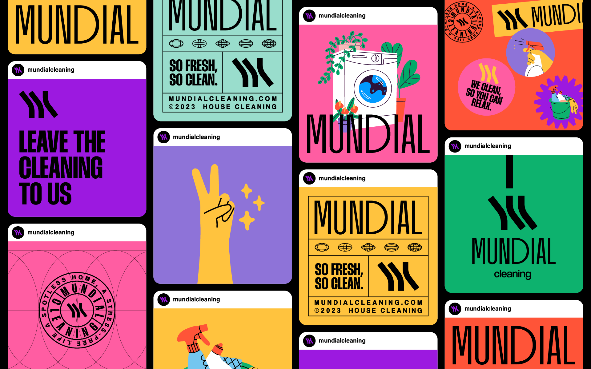A Mundial Cleaning é uma empresa de limpeza doméstica com sede em Nova York, conhecida por sua postura jovem e descontraída, perfeitamente alinhada com seu público-alvo de clientes jovens e ocupados, que buscam soluções eficientes para a limpeza de suas residências. Ao desenvolver a identidade visual da marca, nosso principal objetivo foi proporcionar uma experiência totalmente nova tanto para a empresa quanto para o setor em que atua. Para isso, optamos por uma tipografia forte e autêntica, aliada a uma paleta de cores vibrante e expressiva, resultando em uma marca visualmente dinâmica e envolvente.