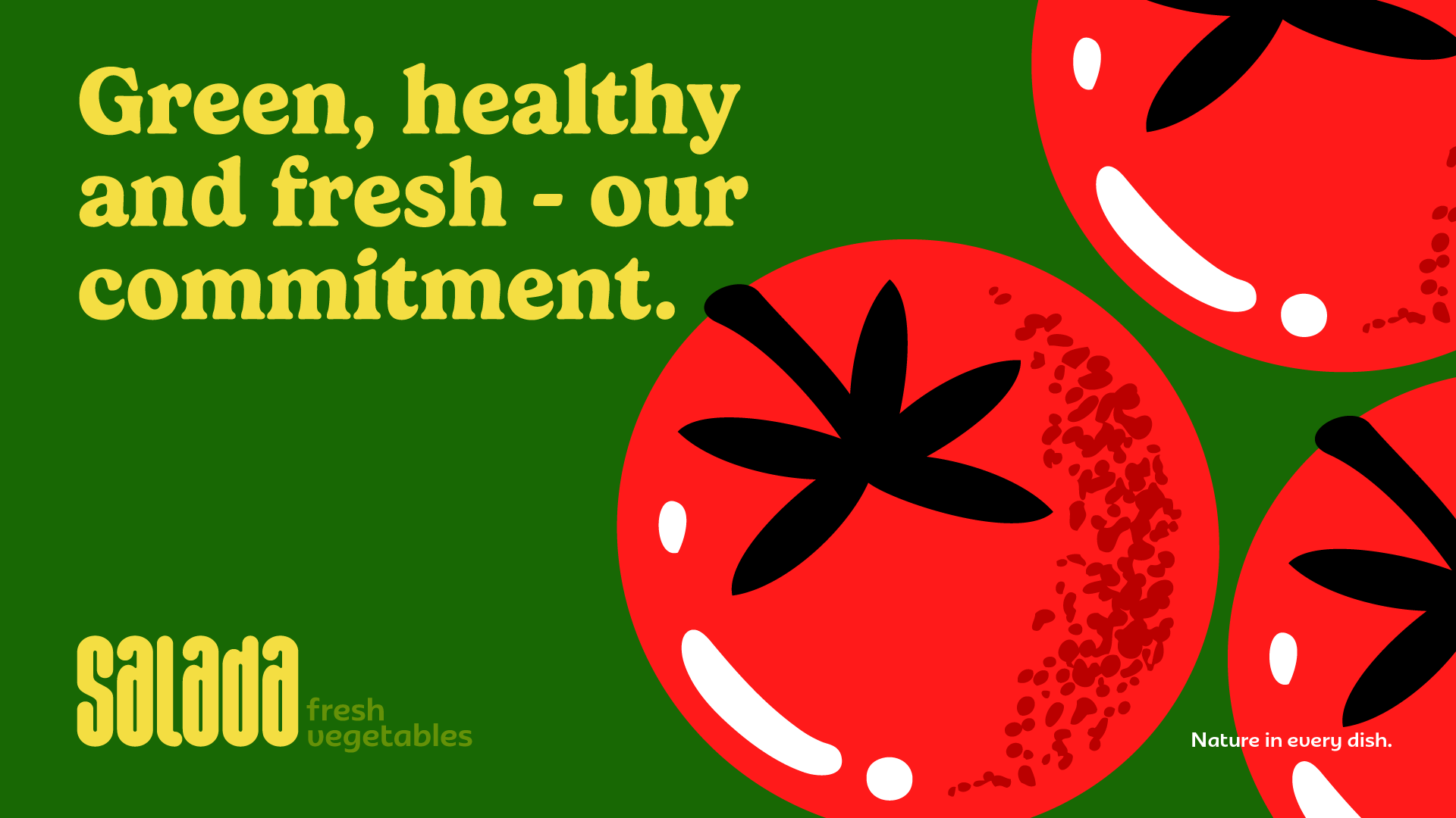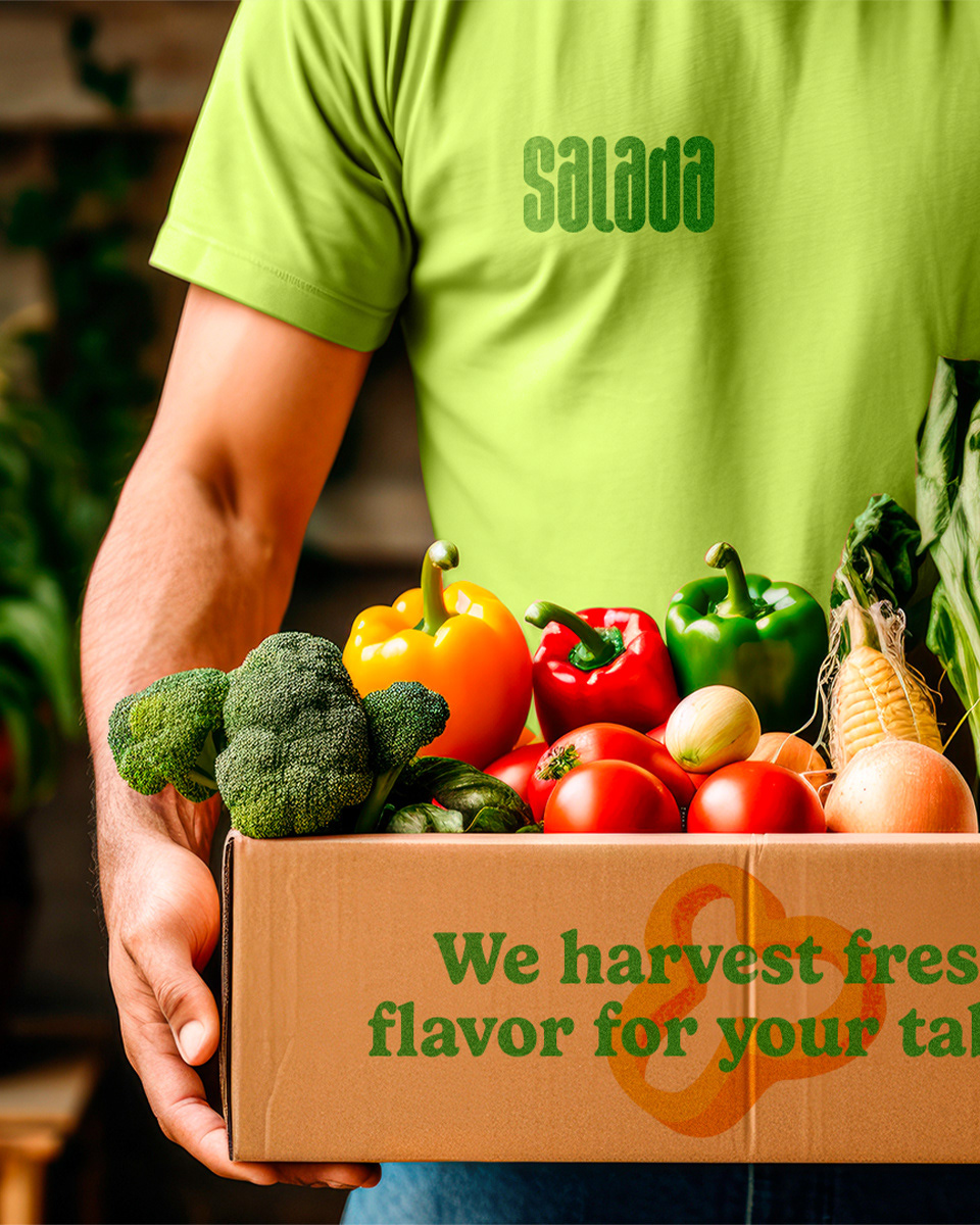 A identidade visual da Salada é baseada em pilares essenciais que norteiam cada projeto desenvolvido: qualidade, frescor, saúde e sustentabilidade. Essa abordagem meticulosa é crucial para comunicar a seriedade e o profissionalismo da marca Salada, enquanto o design moderno e vibrante garante uma aparência cativante e memorável. A combinação de uma paleta de cores frescas, ilustrações vibrantes e tipografia moderna resulta em uma identidade visual coesa e impactante, posicionando a Salada como referência no mercado de vegetais frescos e saudáveis.